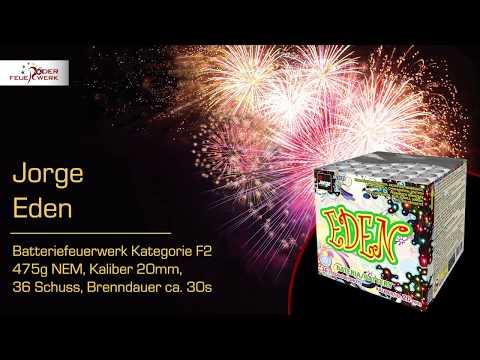 36 Schuss Crossette Batterie Eden JW2039 von Jorge Fireworks aus Polen mit bunten Crossette Sternen im Kaliber 20 mm: rot, grün, blau, purpur, lemon und gelb. Die Crossette-Sterne der JW2039 Eden von Jorge überzeugen durch besondere Farbenpracht und Leuchtstärke.