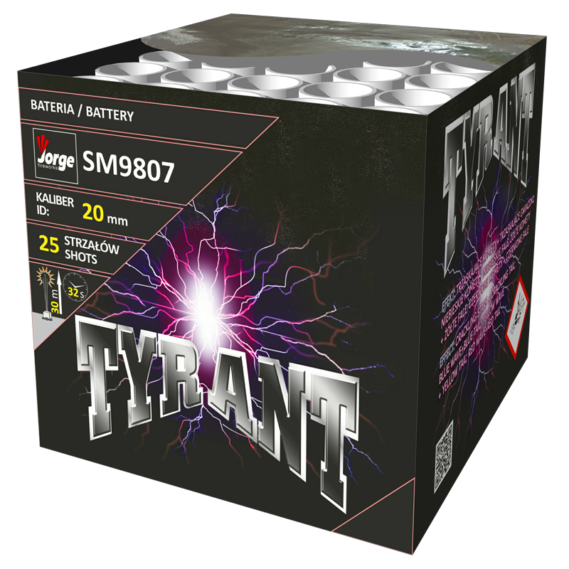 Der Jorge Tyrant SM9807 ist ein leistungsstarkes Feuerwerksprodukt, das durch seine beeindruckende Effektdarstellung und zuverlässige Zündung besticht.
